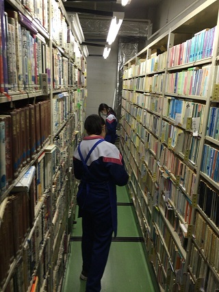私は今回書庫配架という仕事を体験させて頂きました。書庫配架は、書庫の棚に本を戻すというものでした。説明を聞いただけでは簡単そうにも思えますが、実際にやってみるとたった一冊の本を戻すだけでも、かなり時間がかかってしまいました。今回は私も含め3人で行いましたが、普段は1人でやっていると聞き、とても驚きました。